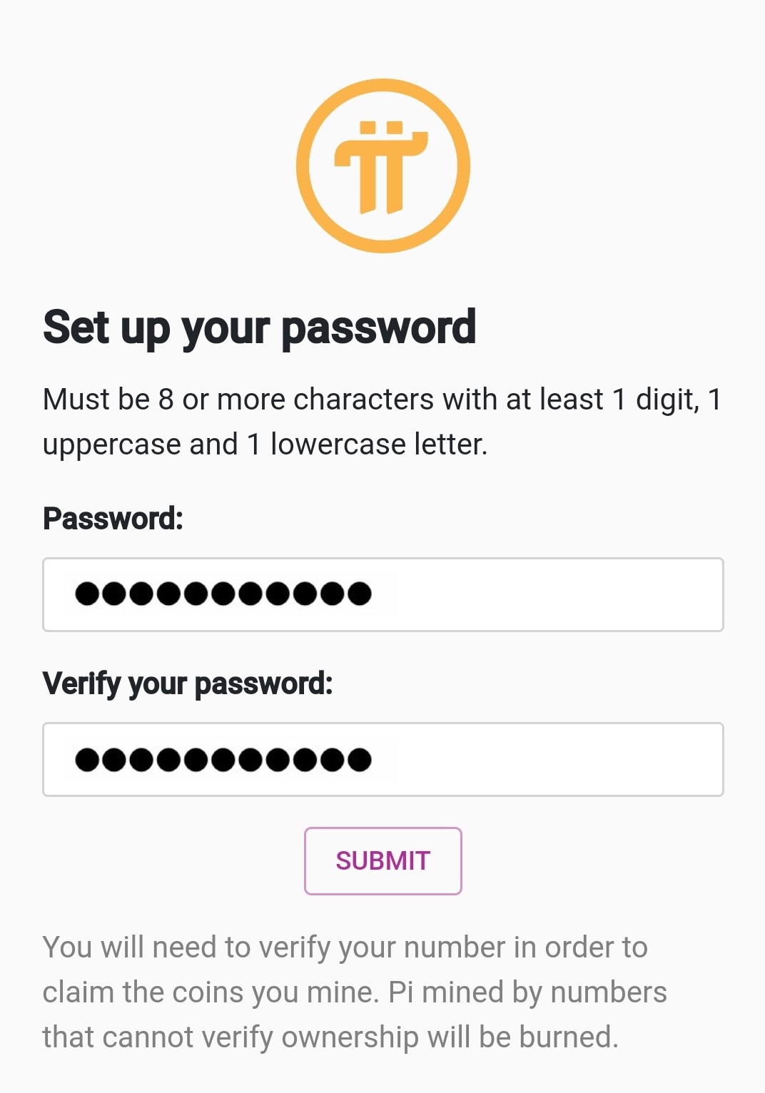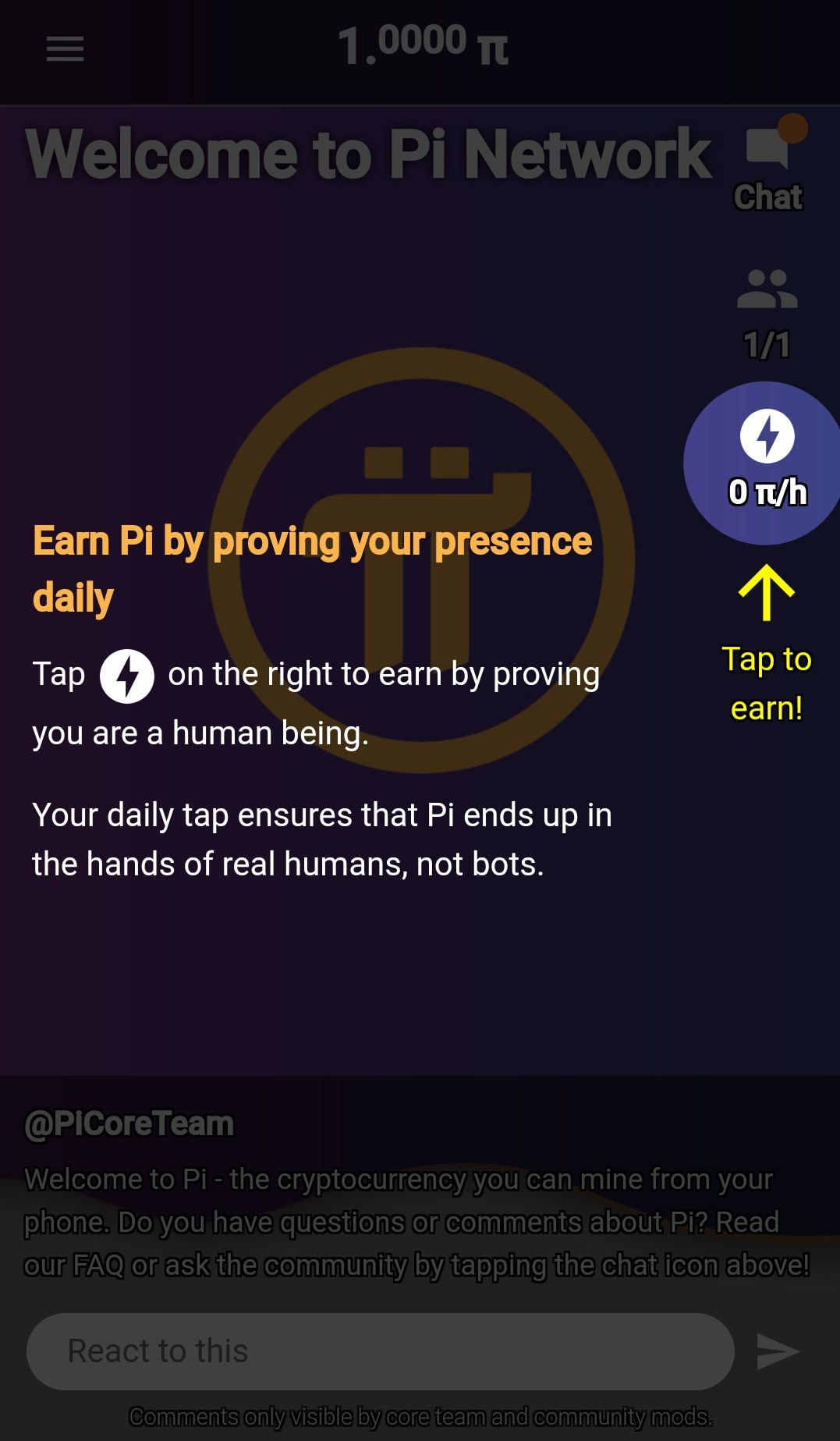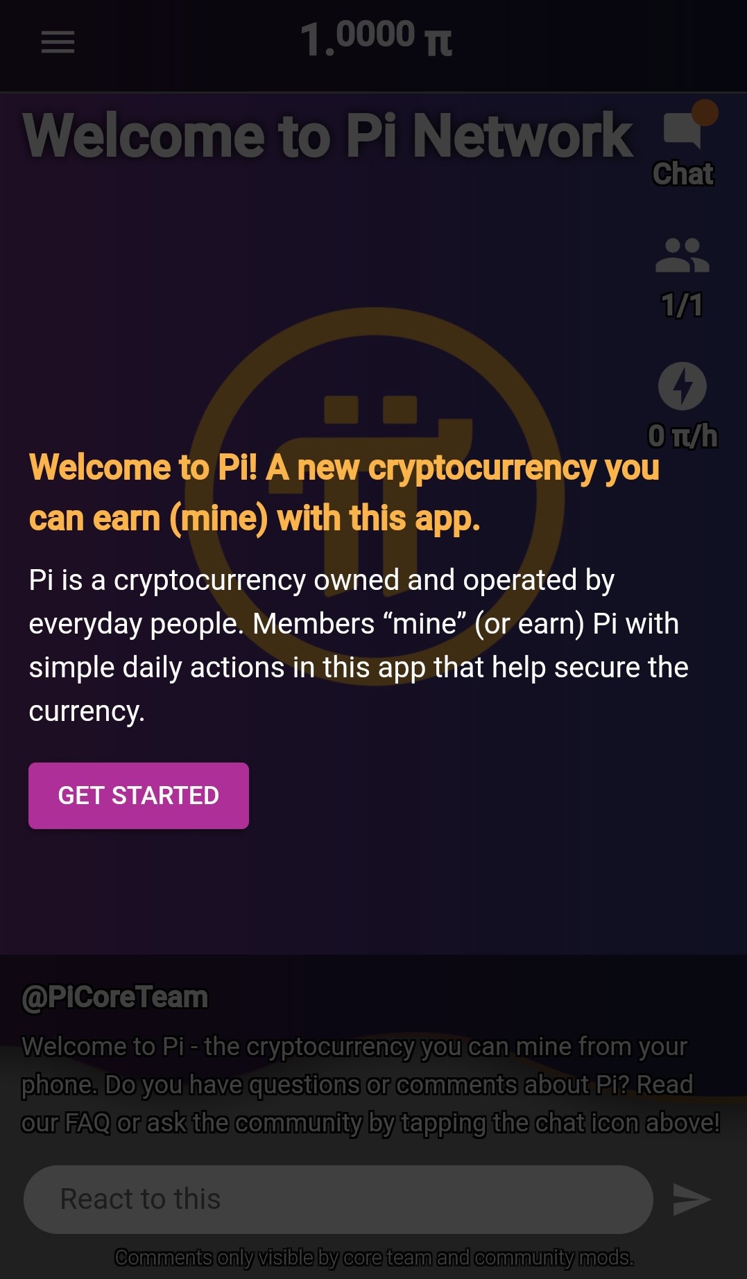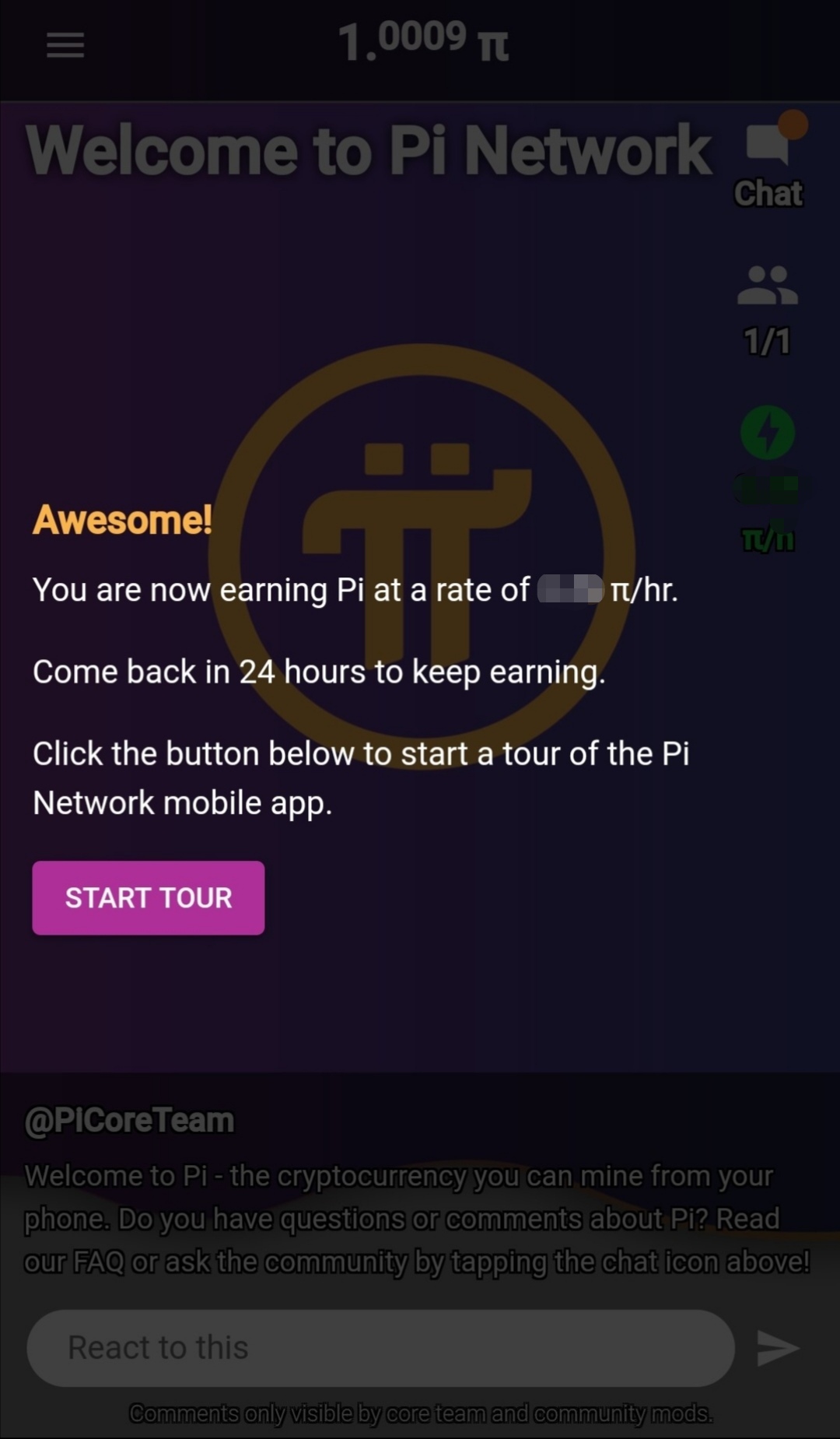 Step 7. Now you are ready to mine PI. After signing up, every user receives 1 PI.