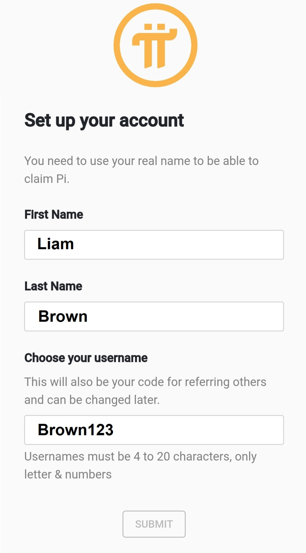 Step 4. Complete the fields with your name and unique username, then click submit.